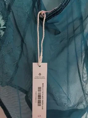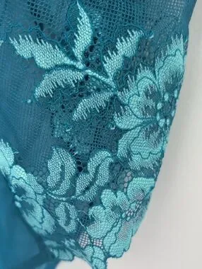 Never been worn! Accidentally ordered 2 🤣Delicate teal lace teddy with a plunging V-neck. Sheer floral lace panels create a feminine, flattering look. Adjustable straps provide a customized fit. Teal color adds elegant, modern appeal. Perfect for special nights or as luxury sleepwear.