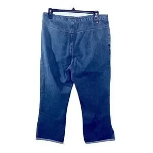 Step into retro vibes with these Tommy Hilfiger vintage high-waist mom jeans, capri length, size 10. 100% breathable cotton with feminine split seams along the sides and woven ribbon ankle detailing for unique flair. Perfect for casual outings, vintage-inspired outfits, or everyday wear.