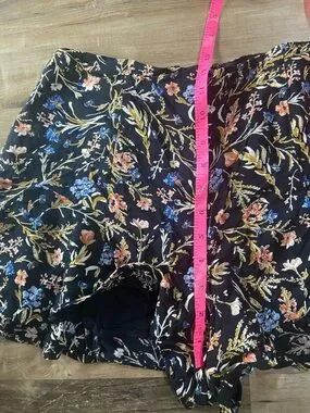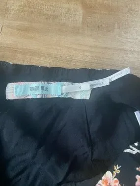 Kimchi Blue Black Floral Ruffle Shorts with Blue and Pink Accentst