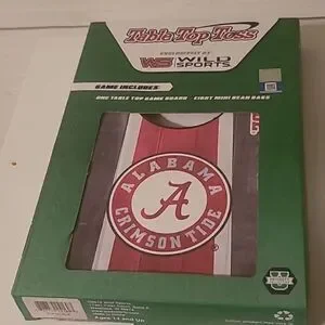 Preowned in good condition. Three games. Table Top Toss Crimson Tide Edition, Table Top 4 In A Row and mini Jenga.