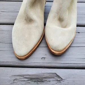 Free People Charm Camel Tan Suede Leather Pointed Toe Chunky Ankle Boots Booties