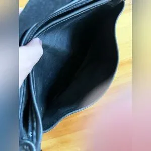 Smooth black leather shoulder bag with a simple flap design. Adjustable strap for comfortable, hands-free wear. Clean, minimalist look that pairs easily with any outfit. Black color gives a timeless, versatile appearance.