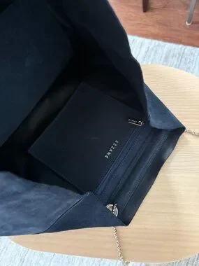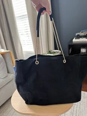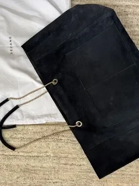 Sézane Gaby Suede Tote | Navy Blue | Gold Chain Strap | Large Bag w/ Dust Bag