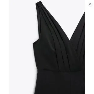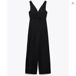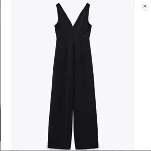 ZARA Sleeveless Pleated Front Wide Leg Jumpsuit in Black Size M MWT