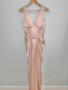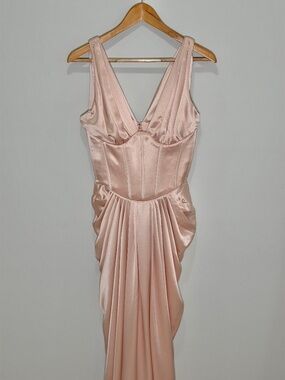 House of CB Angeline Blush Pink Satin Corset Maxi Dress - Small