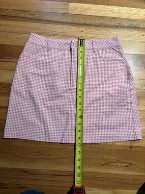 Cute gingham mini with a subtle A-line shape. Front zip closure and sewn pockets. Lightweight fabric for easy wear. Perfect for casual days or brunch outings.