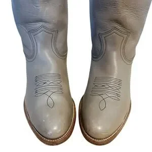 Frye Vintage Taupe Tan Leather Almond Toe Mid Calf Cowgirl Boots 9.5
