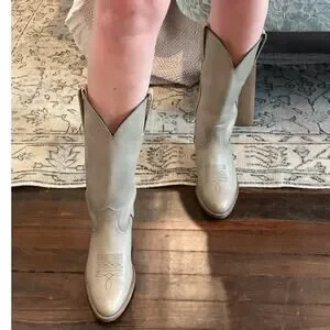 Frye Vintage Taupe Tan Leather Almond Toe Mid Calf Cowgirl Boots