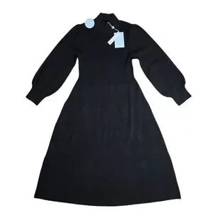 Hill House The Persephone Black Ribbed Sweater Knit Midi Dress Size XL New