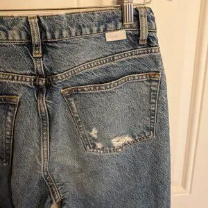 Distressing on upper right thigh and left thigh and along the pockets. Also distressing on the back pockets with a boyish logo on the back waist band. Also some distressing on right knee.