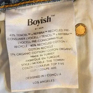 The Tommy High-Rise Straight Leg Jean from Boyish Jeans is a high-waist, rigid straight leg style made consciously and sustainably using in part, recycled cotton.