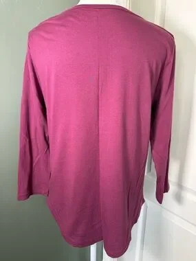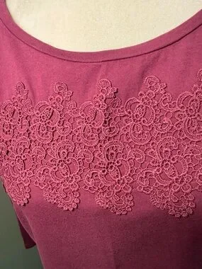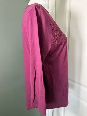 LOFT Outlet Lace Yoke Top Mauve Quarter Sleeve Cotton Tee Size M