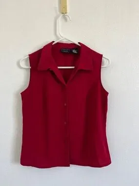 Laura Scott Sleeveless Button-Front Cherry Red Blouse 8P