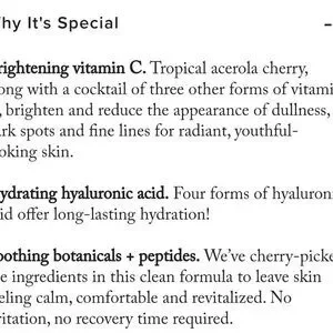 Vitamin C Brightening Facial Serum that reduces dark spots without causing irritation. It is new open box.