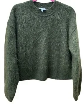 & Other Stories Cozy Olive Green Women's Fuzzy Crewneck Sweater Size Small
