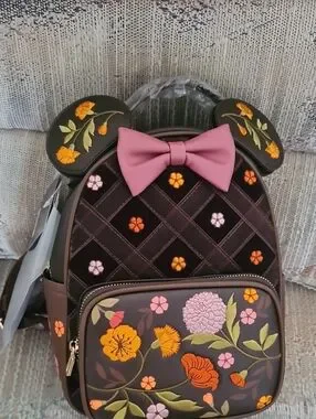 BoxLunch Exclusive Minnie Mouse Velvet Floral Interchangable Ear Backpack