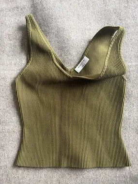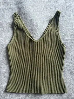 Aritzia Olive Sculpt Knit V-Neck Tank