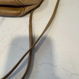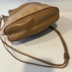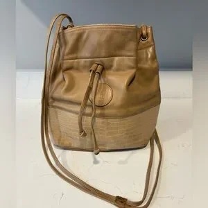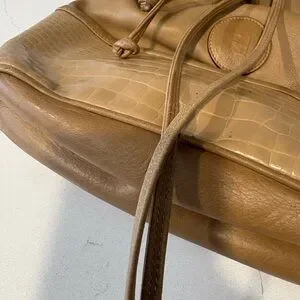 vintage Tan leather Fendi bucket bag with croc-embossed lower panel. Features subtle stitched logo medallion. Clean lines and smooth finish. Refined neutral tone for versatile styling. I’m selling this bag as is. It shows minor/normal signs of wear the draw strings are in working order no issues. It still has a lot of life. No interior tags however the lining is all Fendi monogrammed