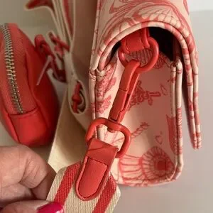 ☀️Betsey Johnson crossbody in light pink with coral sea life print. Includes a striped adjustable strap and a removable coral pouch. Playful, coastal-inspired style for daily wear. NWT