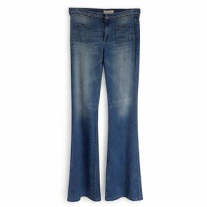 Elevate your everyday denim with these like new GUESS flare jeans, designed to flatter with a sleek mid-rise fit and a timeless flared leg. Crafted in classic blue denim with subtle fading, these jeans offer both comfort and style—perfect for casual wear or dressed up with heels.