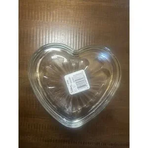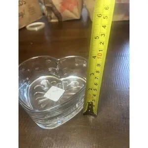 Vintage Libbey Glass Heart Bowl 6” Clear Pressed Glass Candy Dish Sunburst Bottom