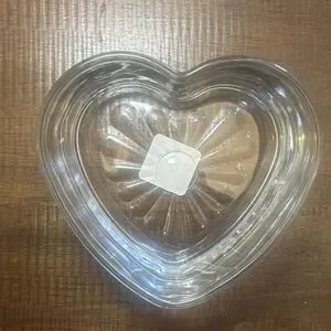Vintage Libbey Glass Heart Bowl 6” Clear Pressed Candy Dish Sunburst Bottom