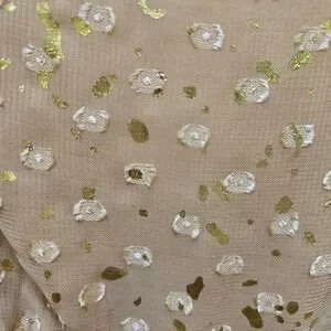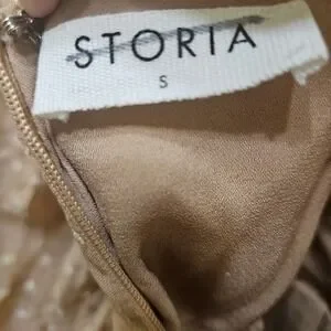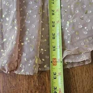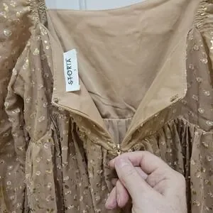Storia Women Gold Flake Embroidered Dots Babydoll Puff Sleeve Mini Dress Small