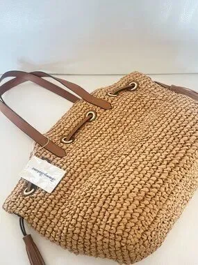 NWT TOMMY BAHAMA STRAW WOVEN TOTE SHOULDER BAG NATURAL BROWN