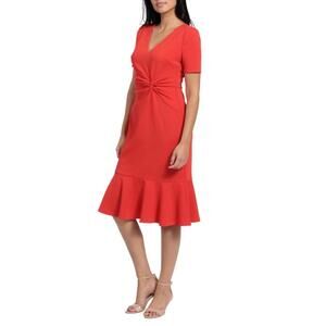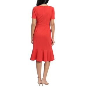 NEW LONDON TIMES twist waist ruffle skirt sheath dress in scarlet red