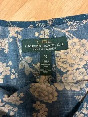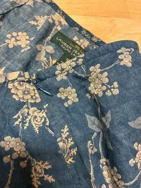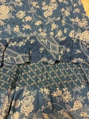 Size 10. Length approximately 23. Waist flat is approximately 16 Blue cream floral tiered ruffle skirt side zipper in great condition. Any questions please feel free to ask. Offers are welcome