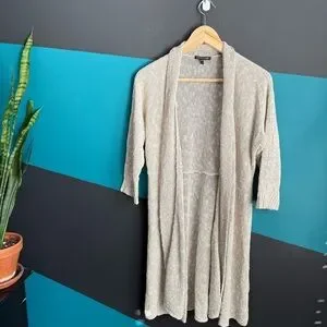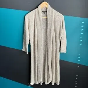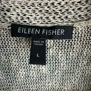 Eileen Fisher Black and Cream Textured Knit Top Linen/Cotton blend Large