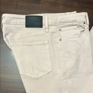 Stylish light pink jeans with a classic design. Features a back pocket and silver rivets. Express jeans have been worn once. There is a mark where the sticker was, but these jeans have never been washed. Essentially new without tags. Great jeans for spring/summer. Best way to describe the color is a dusty rose/carnation