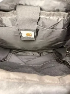 The Carhartt Foundry Series Backpack in Dark Gray is a durable and stylish accessory perfect for those who appreciate quality and craftsmanship. Made from durable canvas material, this backpack features a spacious interior with dimensions of 18x12x6 inches, providing ample room for all your essentials. The design is suitable for various occasions including school, university, college, outdoor activities, and more. Carhartt's reputation for quality and reliability is reflected in this sleek and functional backpack, making it a practical choice for everyday use. This back pack had an embroidered logo but was removed, see pictures, specifically the last picture.