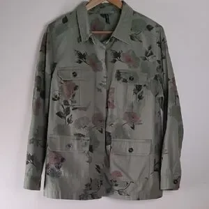 Amanda Green Cotton Floral Utility Jacket Size XL