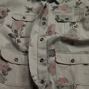 Chic utility jacket with floral accents. Ideal for a trendy look.