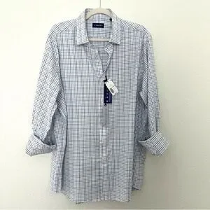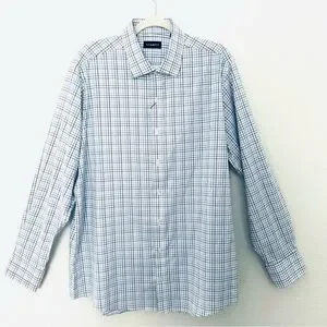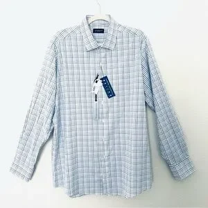 Stantt NEW Performance Tech Stretch Shirt Blue Black Tattersall Size 17.5 34/35