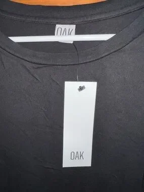 OAK Black Crewneck Short Sleeve Side Pleat Box Maxi Dress • 1 ≈ XS/S
