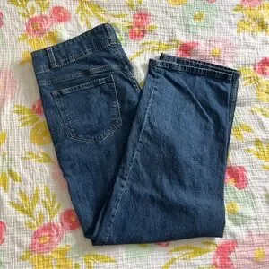 These Banana Republic jeans feature a timeless straight leg design in a rich blue hue. Crafted from durable denim, they offer a structured fit that maintains its shape. Ideal for a classic and polished look.