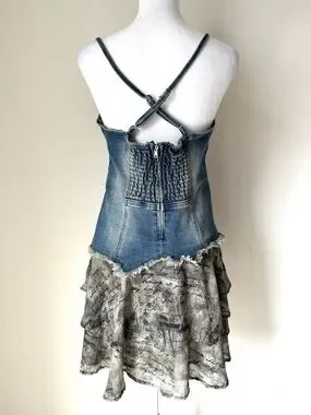 Forever 21 stretch denim corset dress with chiffon tiered ruffle skirt