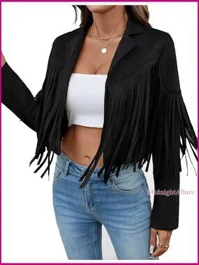 Faux Suede Cropped Jacket with Fringe Tassels, Western Style, Lined