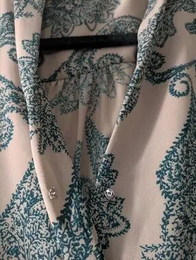 Pleione Paisley Surplice Blouse – Size S – Draped Front, Long Sleeve