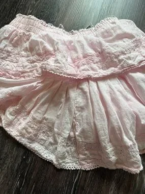 LoveShackFancy Pale Pink Tiered Eyelet Skirt