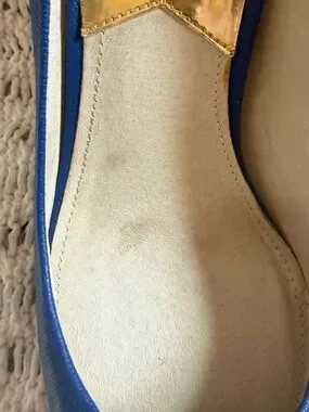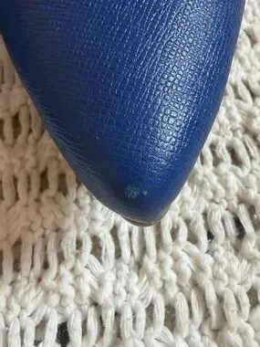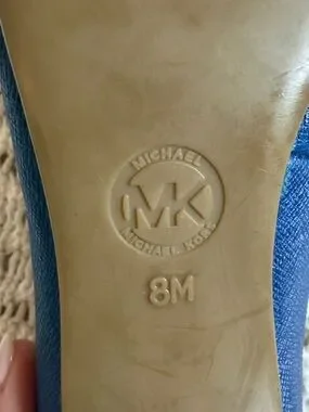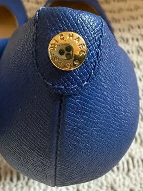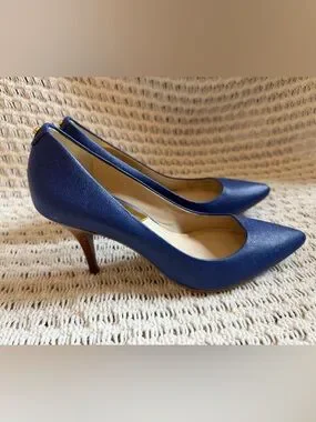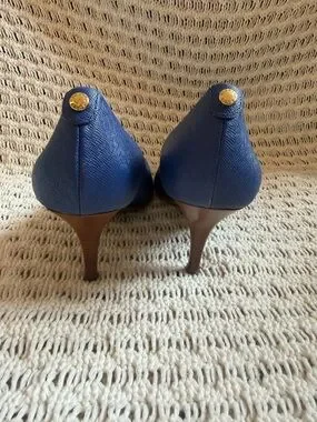Gently worn leather pumps from Michael Kors in electric blue color. Features smooth leather upper, rubber sole, pointed toe, and 2.5” heel. There is a small scuff on the toe of the left shoe (see pictures). There is also a small bit of wear on the footbed of the right shoe (see pictures). No major signs of wear or damage. Women’s size 8M.