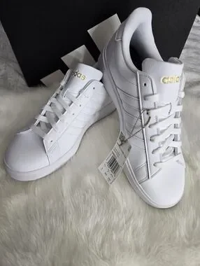 Adidas Ground Court 2.0 White Gold Metallic Sneakers For Womens New✨️