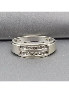 10k White Gold Natural Diamond Channel Set Band Ring Size 10.25 Signed NDI 4.05g