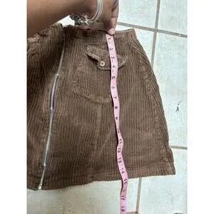 Y2K Vintage Onfire Courdroy Skirt Brown Women's Medium Pockets Zip Front Cotton