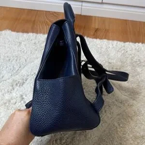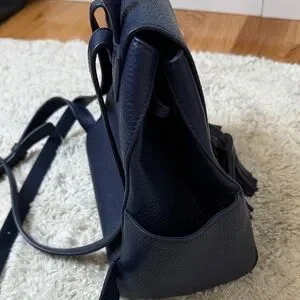 Amazing condition! This stylish navy blue leather backpack is perfect for any occasion. Its sleek design and high-quality material make it a must-have accessory.