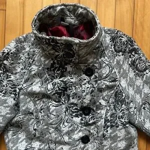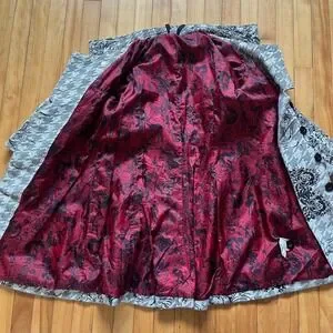 Desigual Checkered Long Trench Coat Size Medium Houndstooth Womens red lining