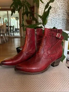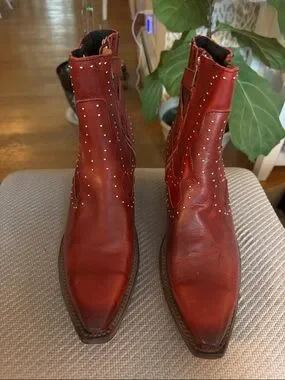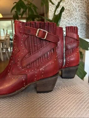 BRAND NEW freebird Red Studded Leather Ankle Boots