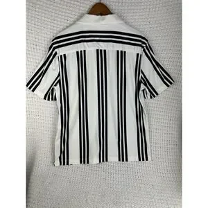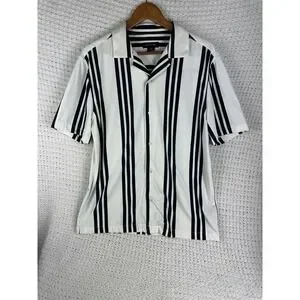 PORTER & ASH Kinetic Stretch Short Sleeve Button Shirt Nvy & Wht Striped Large L